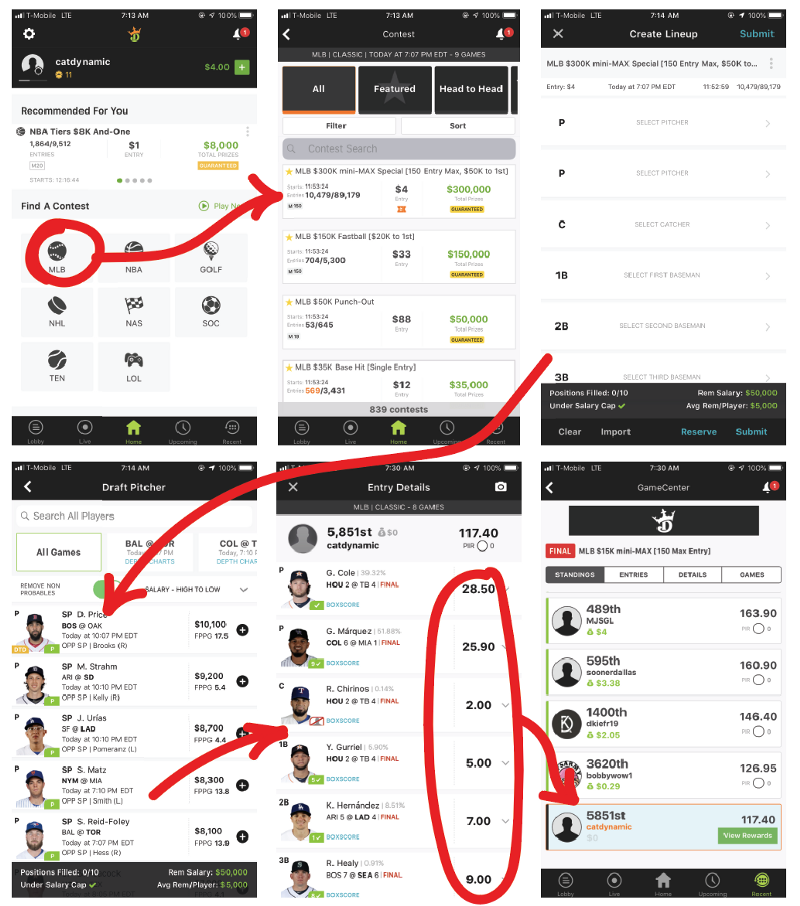 Fantasy is often related to dungeons and dragons and things that do not seem possible in our world. That is why it is surprising that the term is so closely correlated with something that does not seem so far fetched. Users come for the feeling of creating that masterful team of stars that could crush their opponents week in and week out, a little bonus of winning cash is just the cherry on top. When daily fantasy first hit the scene it revolutionized the industry allowing users to not be locked in to bad teams for wholes seasons, letting them reset their lineup each day. This change brought waves of new user as well as promotion to sell the dream of winning big. We wanted to further look into one of the originators of this phenomenon and see what really lies behind it. DraftKings is a mobile app and web platform, where users create daily lineups across a variety of sports (MLB, NBA, NFL, etc.). They compete with friends and random users to gain the most points and win or place in a certain “pool”. Buy-ins for the pools can vary depending on skill level and willingness to bet, as well as size from large public pools to small friend only groups. Players come to the site with various motivations for playing, including making a quick buck, competing against friends, gambling, applying analytics models to sports fantasy, and creating a sustainable revenue stream.